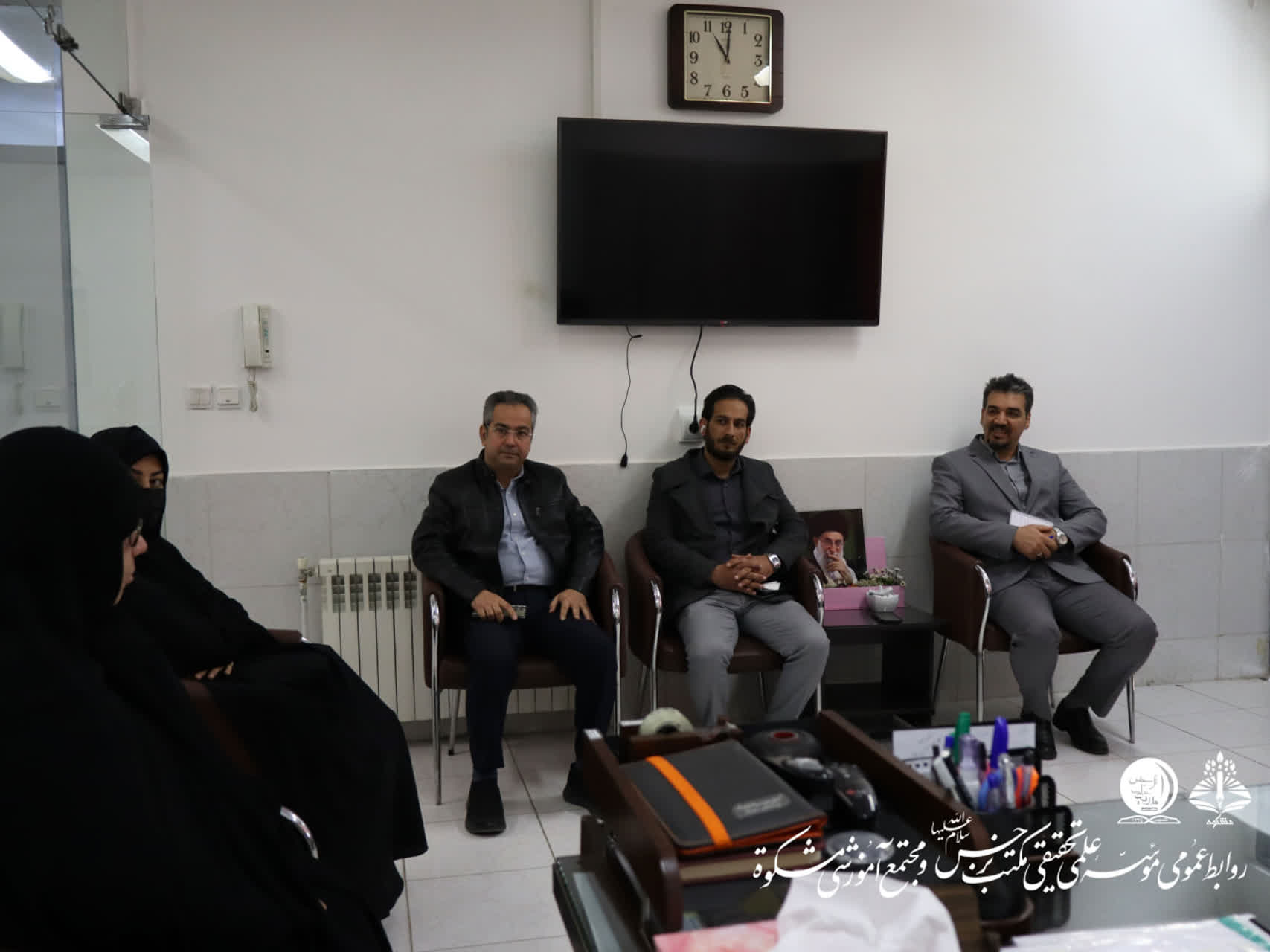 دبیرستان مشکوة میزبان هیئتی متشکل از جناب آقای سعیدی (ریاست محترم مشارکتهای مردمی)، جناب آقای رضایی (کارشناس محترم حراست) و سرکار خانم ابراهیمی بود. این بازدید با هدف بررسی امکانات فیزیکی، برنامههای علمیپرورشی و همچنین شناسایی ظرفیتهای همکاری با جامعه محلی و اولیاء برگزار شد.